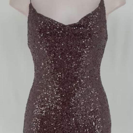 - VESTIDO CORTO COLOR BRONCE CON DOBLE FORRO